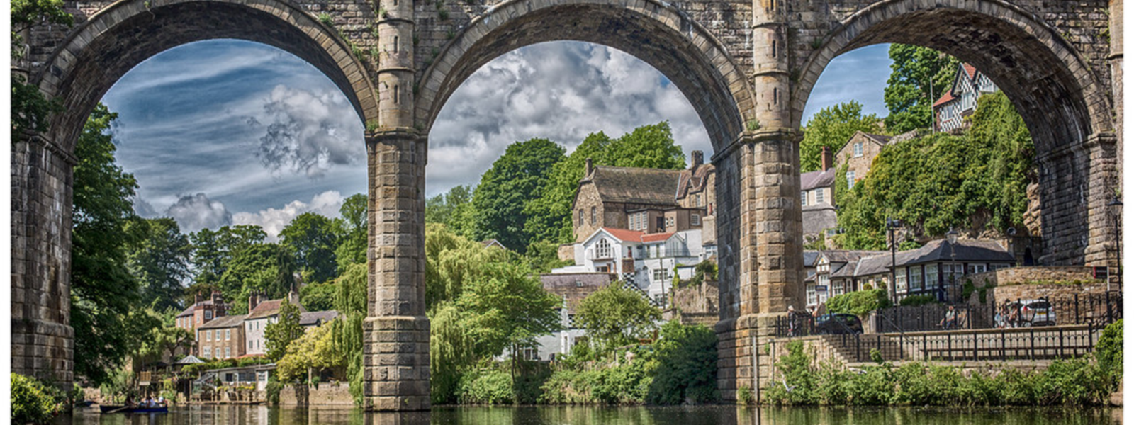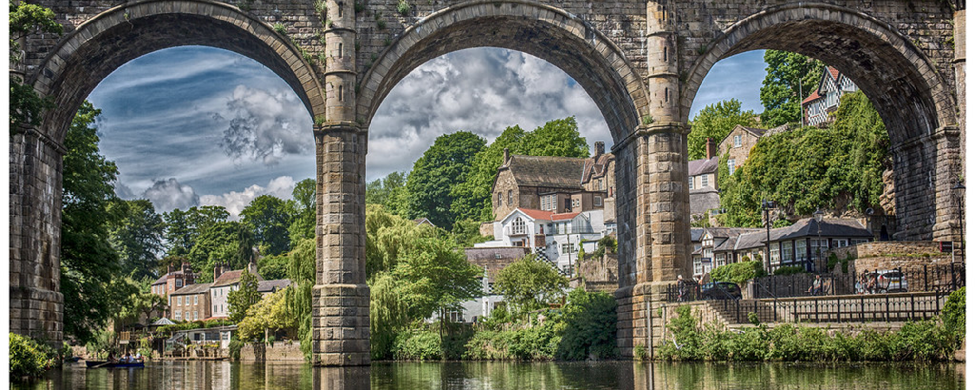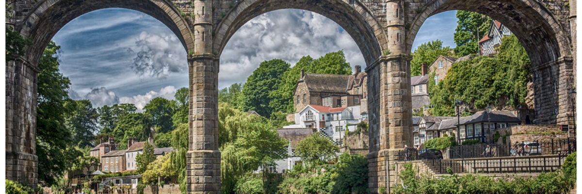 Perched high on cliffs overlooking the River Nidd, the town centre offers visitors arriving by train a breathtaking view of the imposing railway viaduct stretching across the Nidd Gorge.